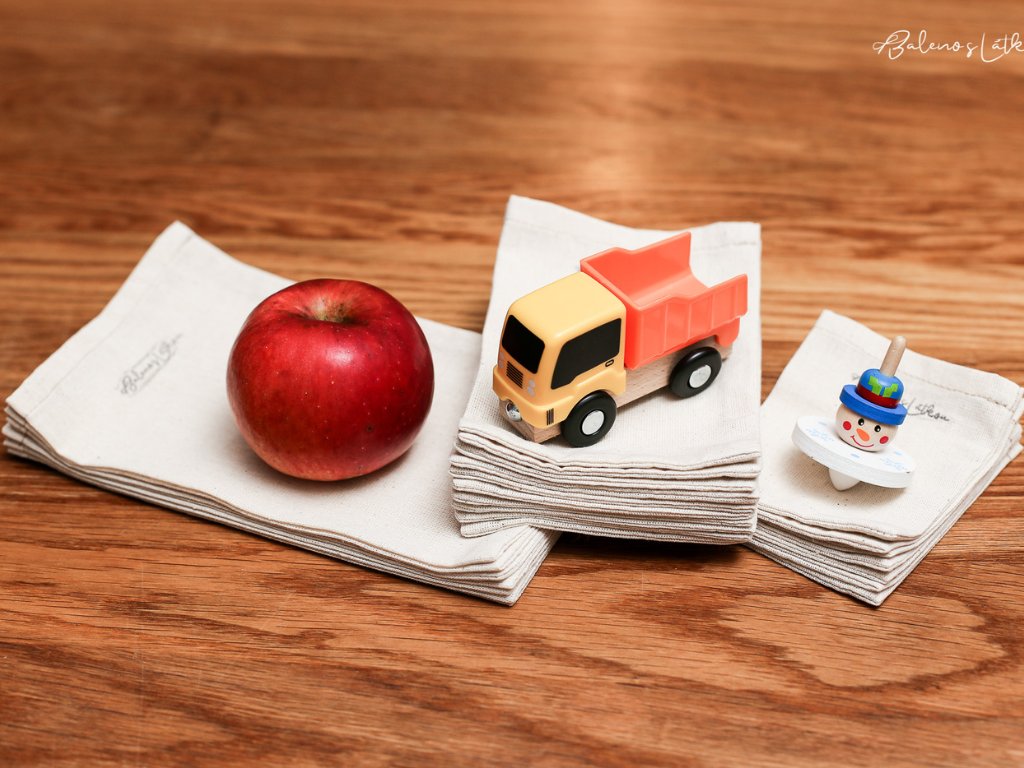 Rozměry sáčků jsou: 29x19cm, 20x12cm, 15x10cm, 10x8cm. Pro lepší představu - do největšího můžete dát jablíčko nebo mandarinku, do středního třeba Kinder vajíčko a do malého sušené ovoce nebo oříšky.
